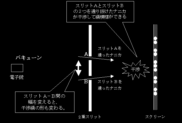 スリットAを通り抜けた電子1個は、一体、なにと干渉したのだろう???