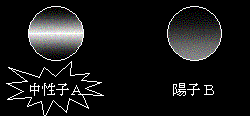 2)しばらくして、中性子Bが壊れて陽子Bになる。電子と反ニュートリノを放出。